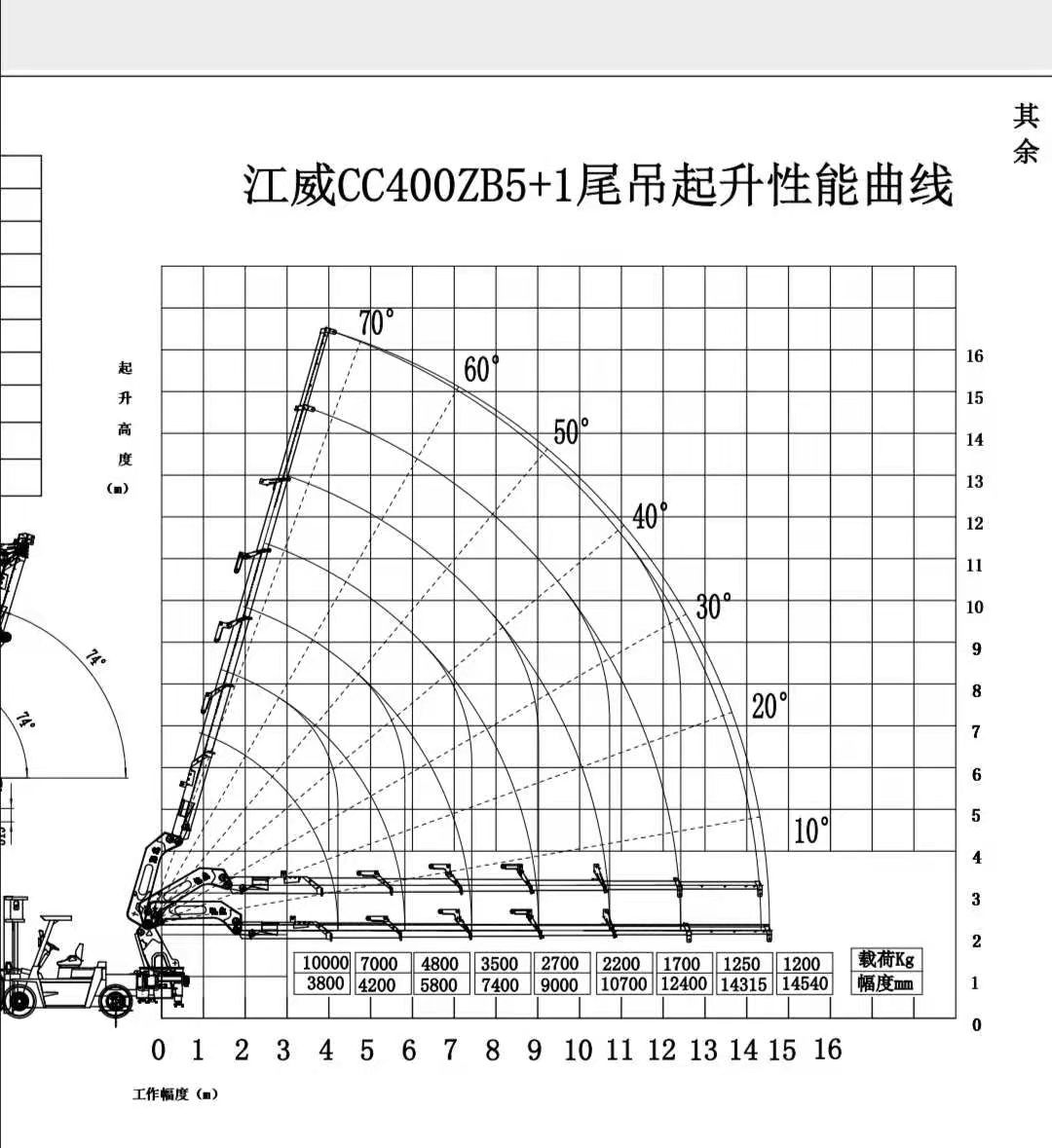 20噸叉車尾吊,5節(jié)液壓一節(jié)手拉,最大工作半徑14.6米,最大起升高度16.5米,可以配在7噸或7噸以上的叉車上,4米吊10噸,全部升出吊1.5噸,配7噸叉車整車長(zhǎng)4.9米,寬2.1米,高2.82米,也可以自己提供叉車,自重14噸左右。