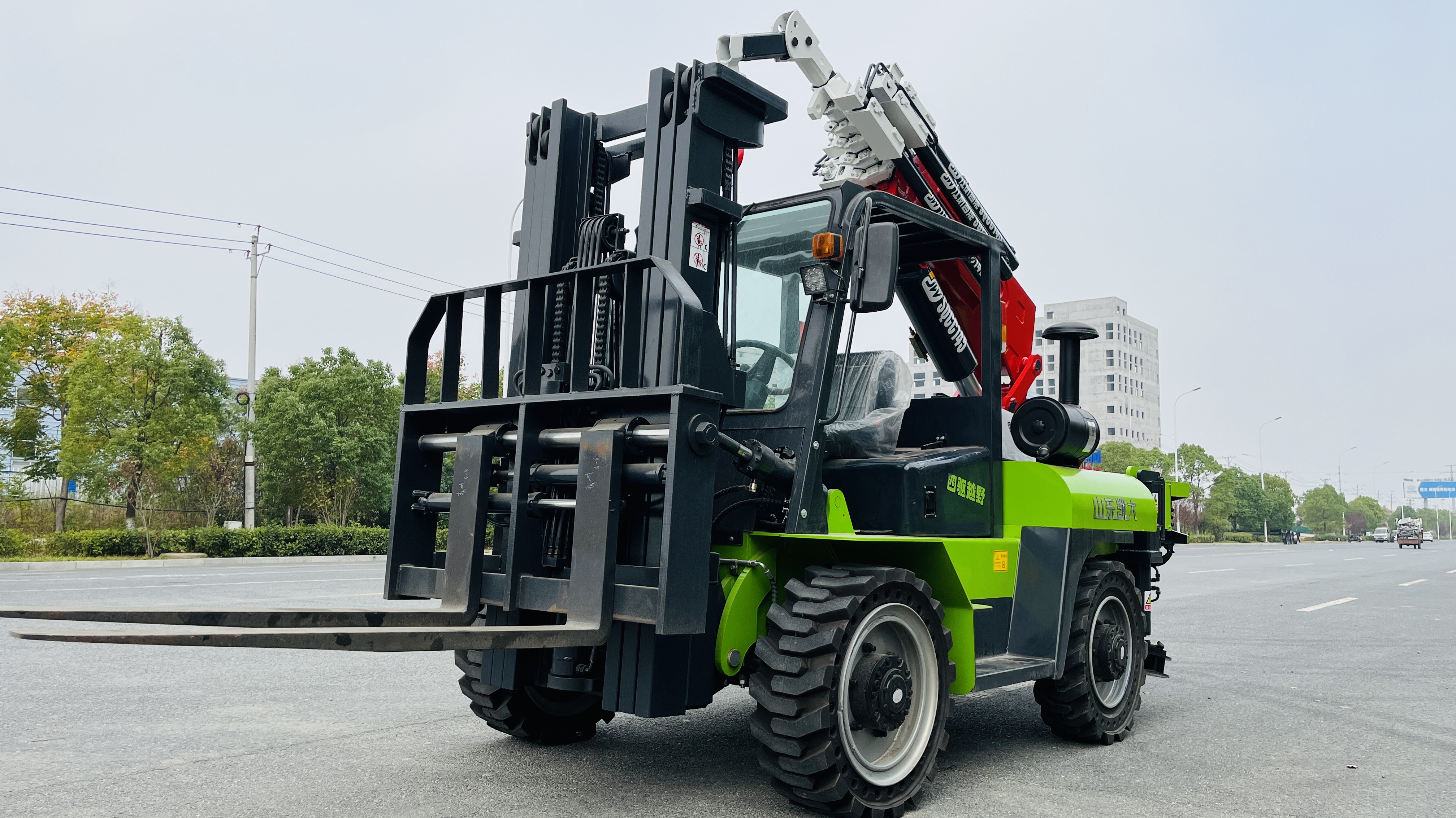 7噸叉車尾吊,6節(jié)液壓一節(jié)手拉,最大工作半徑11.08米,最大起升高度13米,可以配在5噸或5噸以上的叉車上,不出臂吊5噸,全部升出吊0.5噸,配5噸叉車長(zhǎng)4.7米,寬1.6米,高2米,也可以自己提供叉車,自重7噸左右