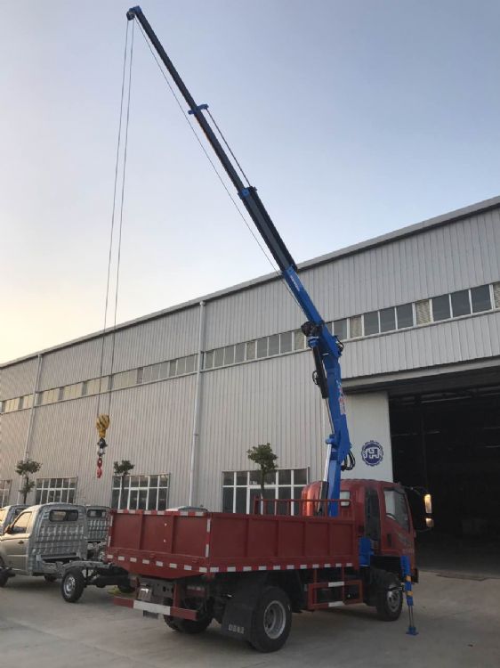 上裝配置:4噸四節(jié)全折臂吊機,最大工作半徑9米,最大起升高度12米,全部伸出可吊0.8噸,全液壓,全回轉(zhuǎn)。