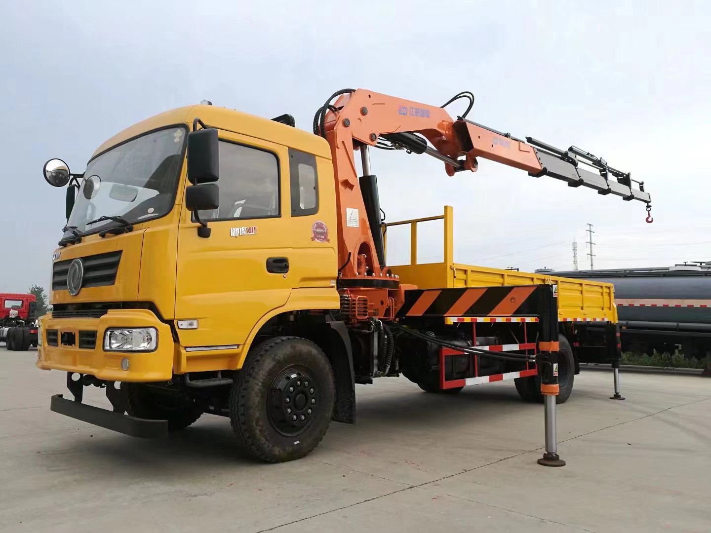 現在隨車吊一般采用新型H型支腿,各支腿可單獨調節(jié)以調整車架水平,支腿跨距大,整機穩(wěn)定性好。隨車吊機可選擇直臂或折臂,有2.3噸、3.2噸、5噸、8噸、10噸、12噸、16噸吊機可選擇,折臂可選用2節(jié)臂、3節(jié)臂、4節(jié)臂、5節(jié)臂、和6節(jié)臂,廣泛運用于各種裝卸、安裝起重作業(yè),尤其適用于野外起重、救險作業(yè)和車站、港口、倉庫、建筑工地、礦山等狹窄場所作業(yè)。